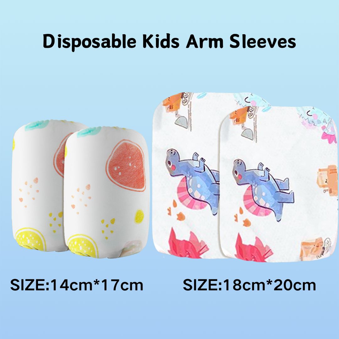 Nuestras mangas de brazo desechables para niños cuentan con una estructura reforzada de triple capa (parte superior gruesa no tejida, núcleo absorbente y respaldo de PE impermeable) para evitar fugas y manchas, manteniendo a los bebés secos durante la alimentación o jugando. Hecho de materiales biodegradablesOfrecen comodidad sin comprometer la sostenibilidad, perfectos para padres con conciencia ecológica.